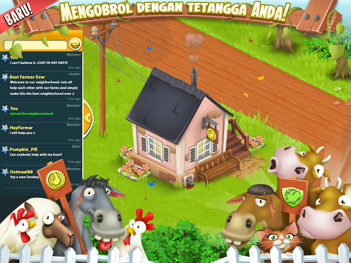 HARAP PERHATIKAN! Hay Day benar-benar gratis, namun beberapa barang game juga dapat dibeli dengan uang. Jika tidak ingin memakai fitur pilihan, harap membuat PIN di dalam app Google Play sebagai proteksi tambahan. Selain itu, berdasarkan Ketentuan Layanan dan Kebijakan Privasi, Anda harus minimal berusia 13 tahun untuk bermain atau mengunduh Hay Day.
